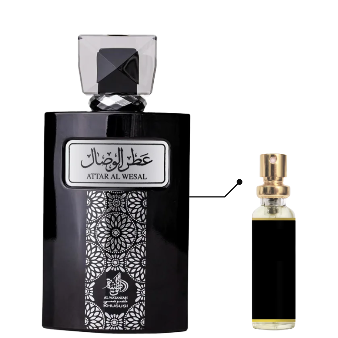 Attar Al Wesal de Al Wataniah é um perfume Oriental Especiado Masculino. Attar Al Wesal foi lançada em 2020. As notas de topo são: Lavanda, Pera, Hortelã, Bergamota e Limão. As notas de coração são: Canela, Sálvia Esclaréia e Cominho. As notas de fundo são: Casca de Baunilha Negra, Cedro, Âmbar e Patchouli.