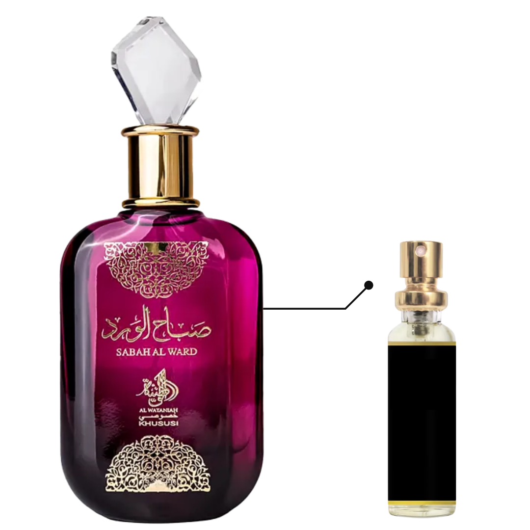 Sabah Al Ward de Al Wataniah é um perfume Oriental Floral Feminino. As notas de topo são: Pimenta Rosa e Mandarina. As notas de coração são: Flor de Laranjeira, Semente de Cacau e Jasmim Sambac. As notas de fundo são: Baunilha, Fava Tonka e Patchouli.