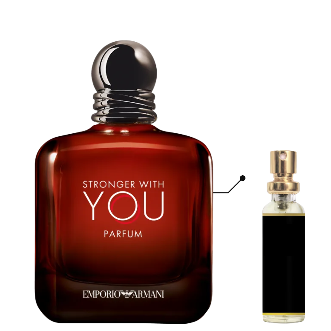 Emporio Armani Stronger With You Parfum de Giorgio Armani é um perfume Oriental Fougére Masculino. Esta é uma nova fragrância. Emporio Armani Stronger With You Parfum foi lançada em 2025. As notas de topo são: Pimenta Rosa e Mandarina. As notas de coração são: Lavanda, Sálvia e Canela. As notas de fundo são: Castanha, Baunilha e Couro.
