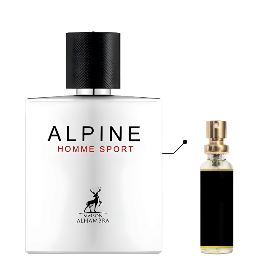 Alpine Homme Sport de Maison Alhambra é um perfume Amadeirado Aromático Masculino. As notas de topo são: Mandarina, Hortelã, Cipreste e Sálvia. As notas de coração são: Cedro e Pimenta. As notas de fundo são: Fava Tonka, Almíscar e Sândalo.